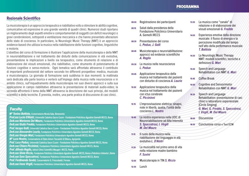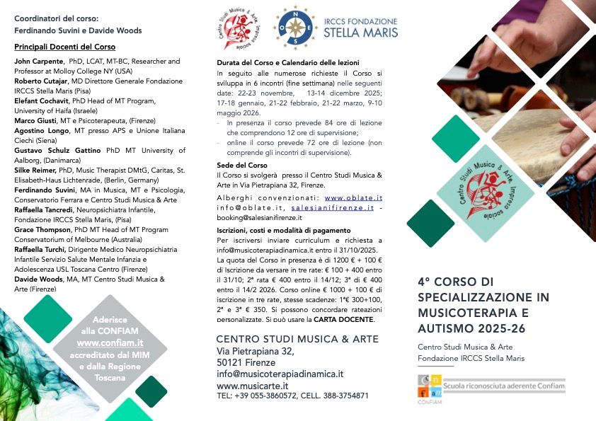 Insegno Musicoterapia Clinica presso il Conservatorio G. Frescobaldi di Ferrara e collaboro con Conservatori di Brescia, Avellino, Padova e Vibo Valentia.