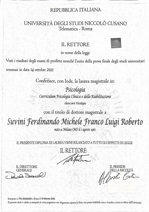 Sto ultimando la Scuola di specializzazione in psicoterapia ad orientamento Fenomenologico-Dinamico di Firenze.